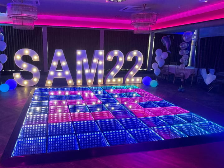 Absolutely. The Magnetic LED Dance Floor tiles can be arranged into letters, shapes, or other creative layouts, allowing you to design the ideal dance floor for your event.